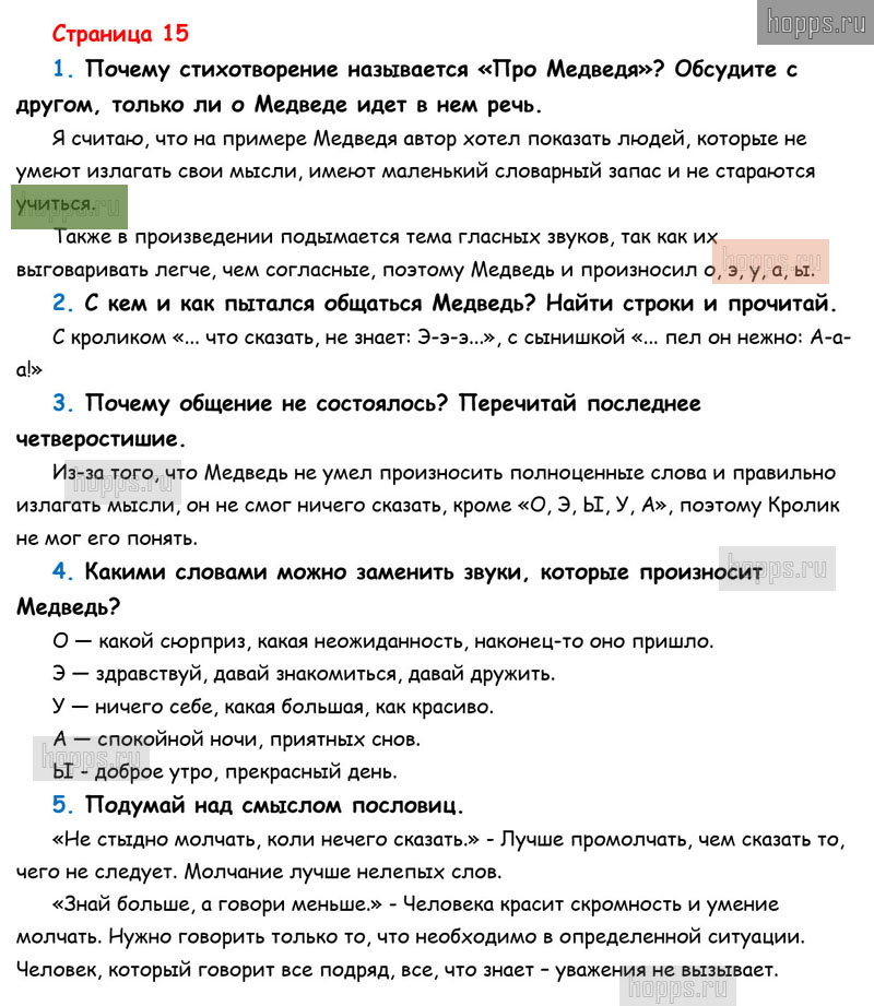 Подробные ответы к вопросам, расположенным на 15 странице 1 части учебника по литературному чтению авторов Л.Ф. Климанова, В.Г. Горецкий, М.В. Голованова для учащихся 1 класса.