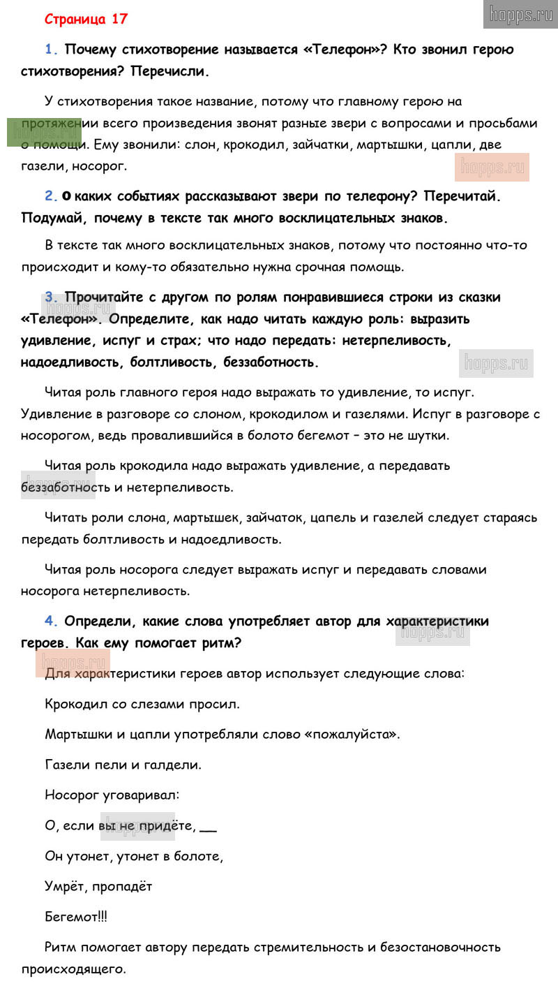 Готовые ответы к вопросам и заданиям на 17 странице 2 части учебнику по литературному чтению для учащихся 1 класса, авторов Л.Ф. Климанова, В.Г. Горецкий, М.В. Голованова, Школа России, 2019 г.