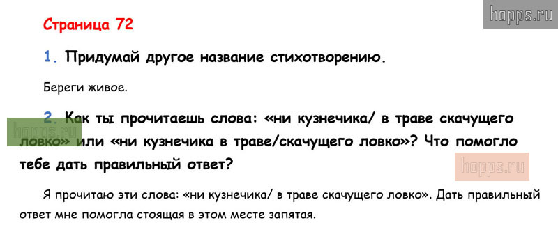 Готовые ответы к вопросам и заданиям на 72 странице 2 части учебнику по литературному чтению для учащихся 1 класса, авторов Л.Ф. Климанова, В.Г. Горецкий, М.В. Голованова, Школа России, 2019 г.