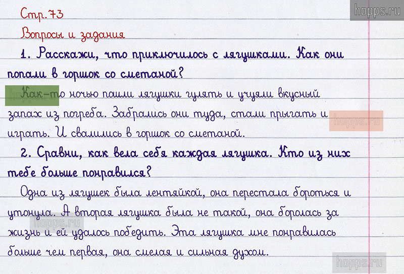 Подробные ответы к вопросам, расположенным на 73 странице 1 части учебника 2011 года по литературному чтению авторов Л.Ф. Климанова, В.Г. Горецкий, Л.А. Виноградская для учащихся 1 класса.