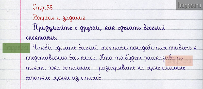 Подробные ответы к вопросам, расположенным на 59 странице 2 части учебника 2011 года по литературному чтению авторов Л.Ф. Климанова, В.Г. Горецкий, Л.А. Виноградская для учащихся 1 класса.