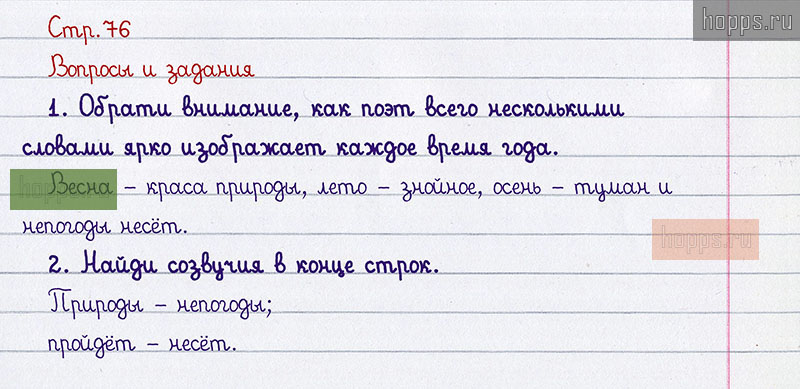 Подробные ответы к вопросам, расположенным на 76 странице 2 части учебника 2011 года по литературному чтению авторов Л.Ф. Климанова, В.Г. Горецкий, Л.А. Виноградская для учащихся 1 класса.