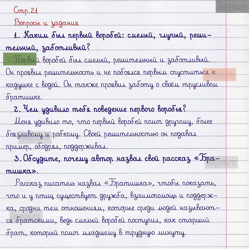 Подробные ответы к вопросам, расположенным на 21 странице 2 части учебника 2019 года по литературному чтению авторов Л.Ф. Климанова, В.Г. Горецкий, Л.А. Виноградская для учащихся 1 класса.