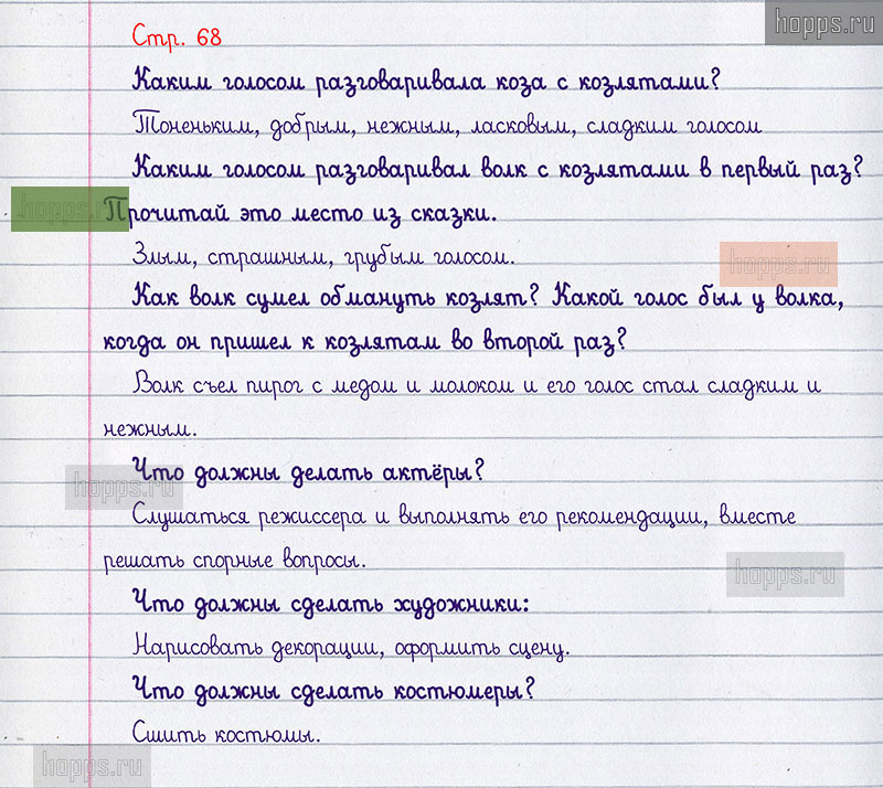 Подробные ответы к вопросам и заданиям, расположенным на 68 странице творческой тетради по литературному чтению авторов Л.Ф. Климанова, Т.Ю. Коти для учащихся 1 класса.