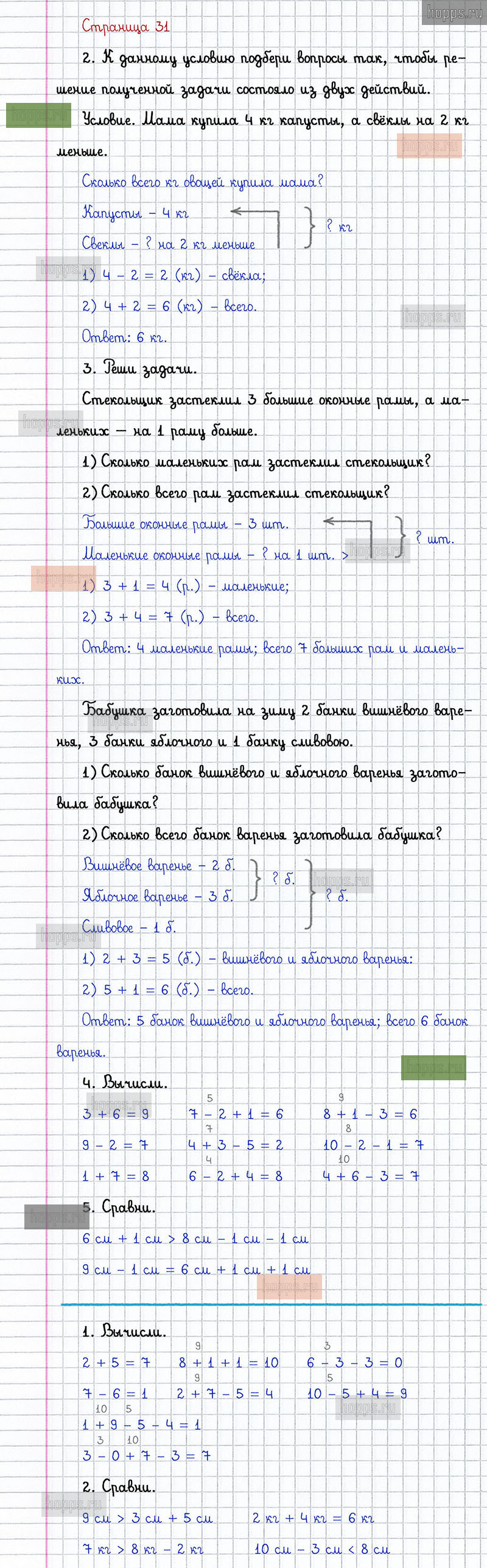 Подробные ответы к заданиям, расположенным на 31 странице 2 части учебника 2019 года по математике авторов Г.В. Дорофеев, Т.Н. Миракова, Т.Б. Бука для учащихся 1 класса.