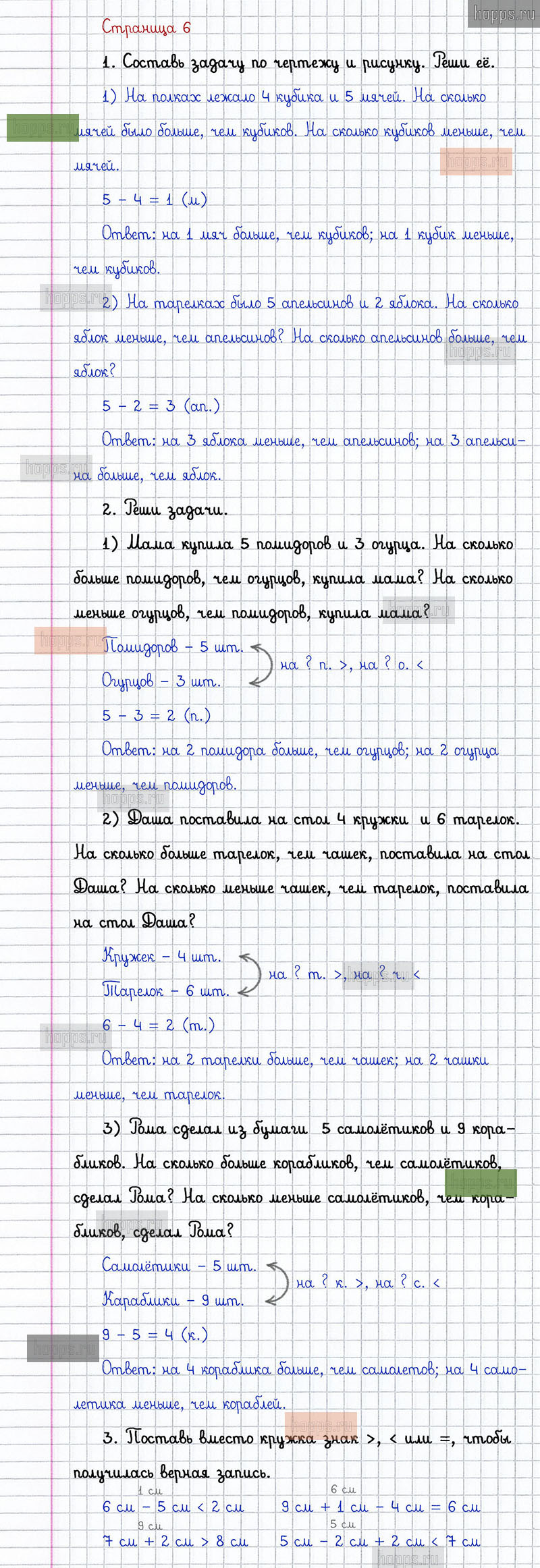 Подробные ответы к заданиям, расположенным на 6 странице 2 части учебника 2019 года по математике авторов Г.В. Дорофеев, Т.Н. Миракова, Т.Б. Бука для учащихся 1 класса.