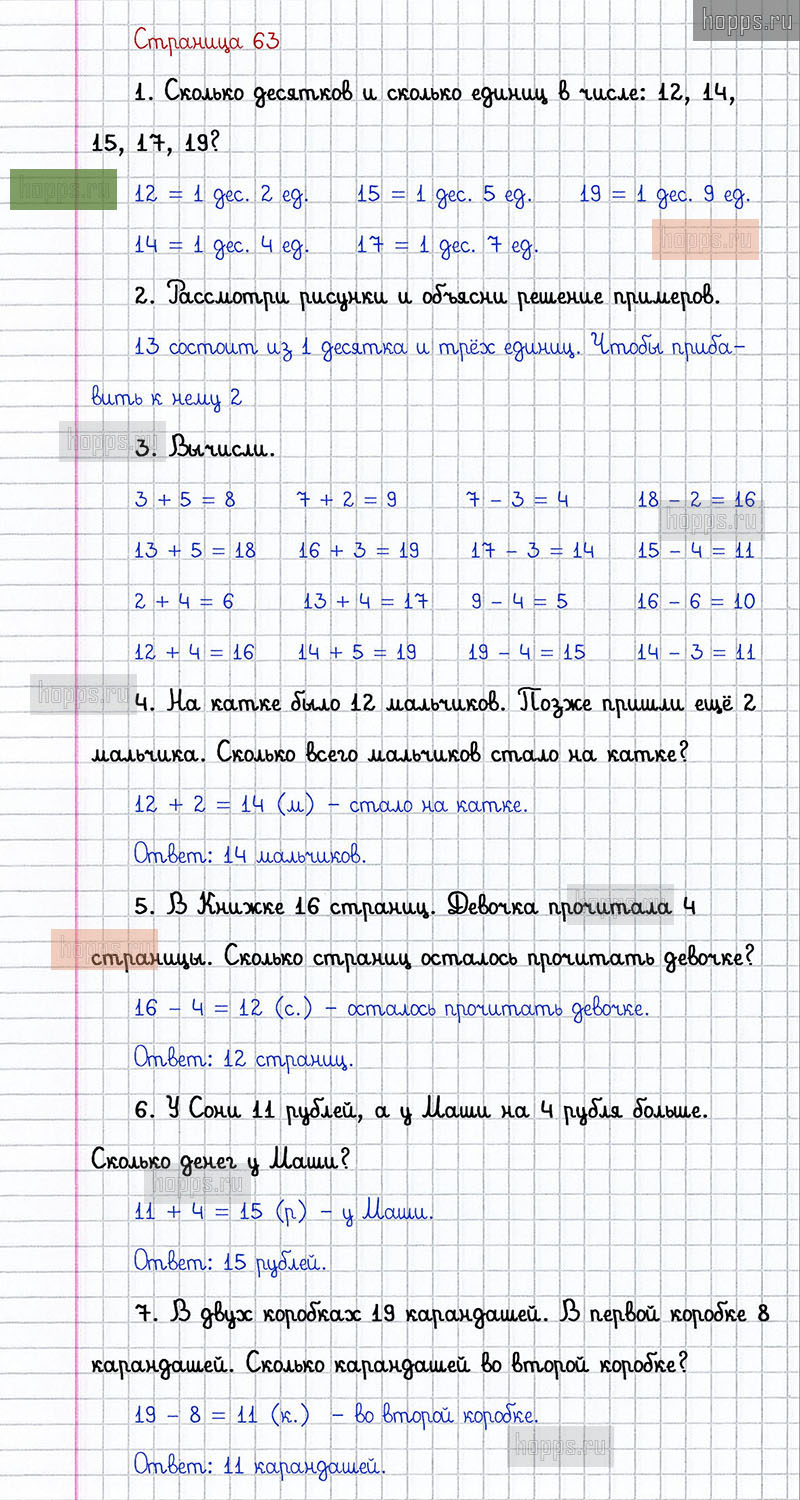 Подробные ответы к заданиям, расположенным на 63 странице 2 части учебника 2019 года по математике авторов Г.В. Дорофеев, Т.Н. Миракова, Т.Б. Бука для учащихся 1 класса.