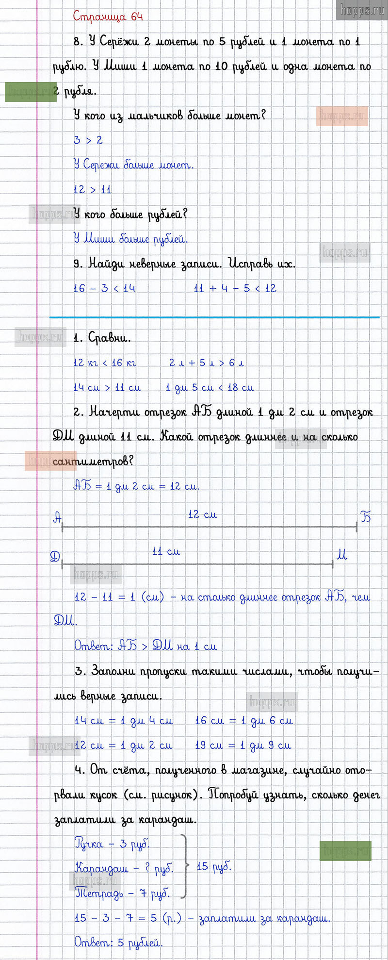 Подробные ответы к заданиям, расположенным на 64 странице 2 части учебника 2019 года по математике авторов Г.В. Дорофеев, Т.Н. Миракова, Т.Б. Бука для учащихся 1 класса.