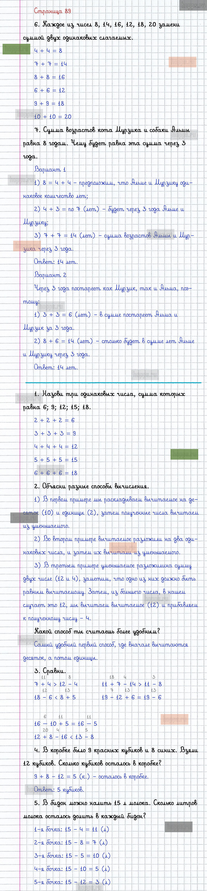 Подробные ответы к заданиям, расположенным на 89 странице 2 части учебника 2019 года по математике авторов Г.В. Дорофеев, Т.Н. Миракова, Т.Б. Бука для учащихся 1 класса.