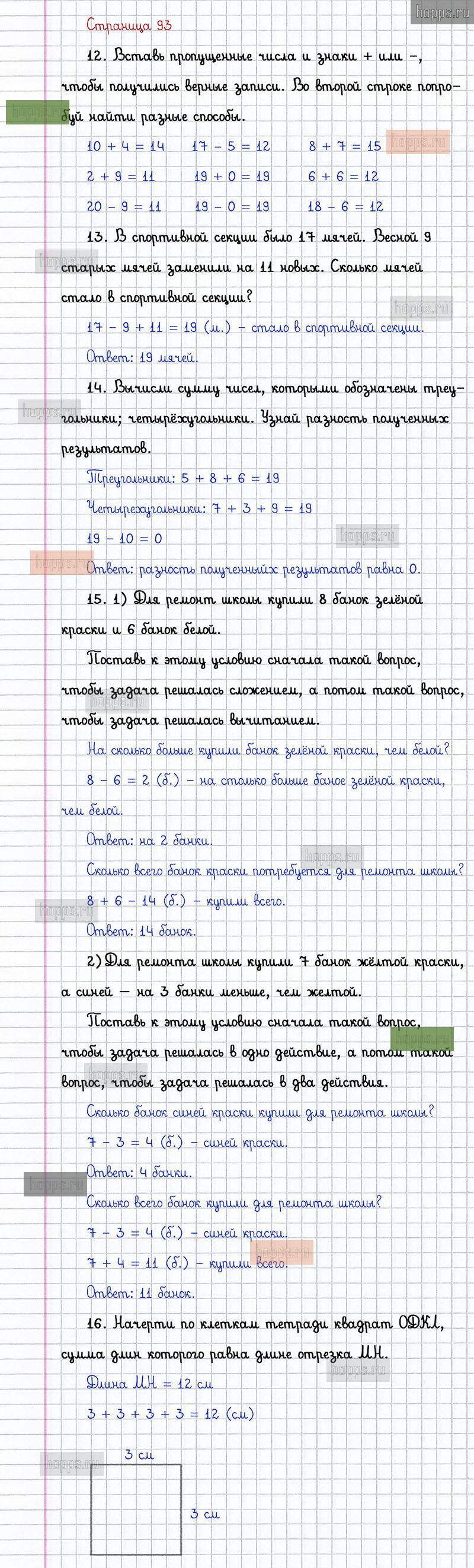 Подробные ответы к заданиям, расположенным на 93 странице 2 части учебника 2019 года по математике авторов Г.В. Дорофеев, Т.Н. Миракова, Т.Б. Бука для учащихся 1 класса.