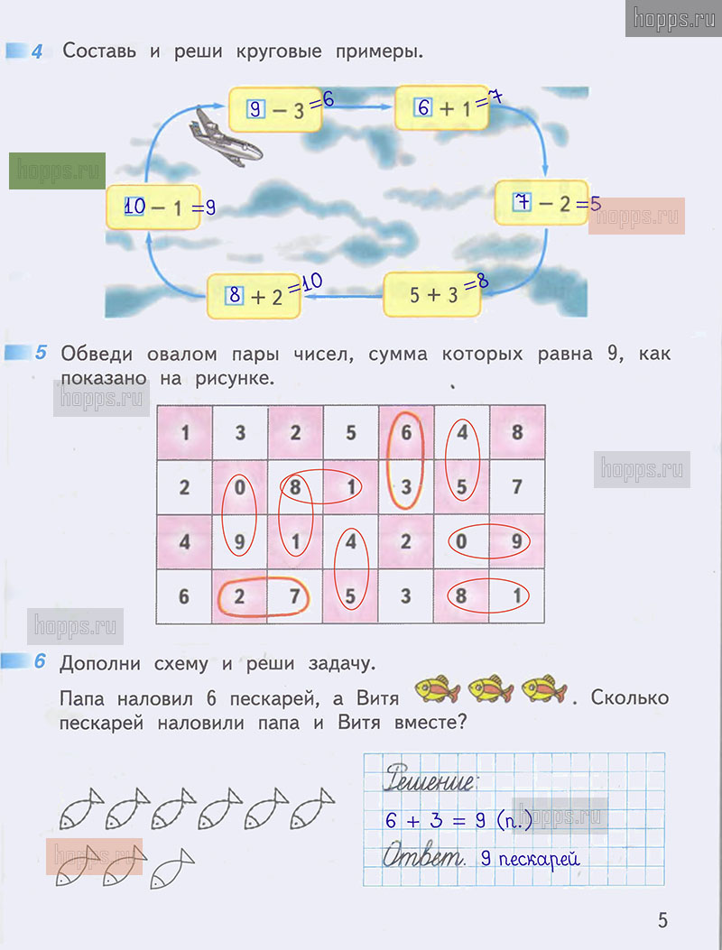 Подробные ответы к заданиям на 5 странице 1 части рабочей тетради по математике Г. В. Дорофеев, Т. Н. Миракова, Т. Б. Бука для учащихся 1 класса.