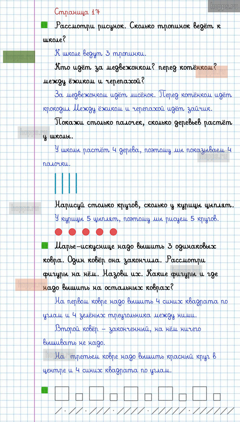 Подробные ответы к заданиям, расположенным на 17 странице 1 части учебника 2019 года по математике авторов Г.В. Дорофеев, Т.Н. Миракова, Т.Б. Бука для учащихся 1 класса.