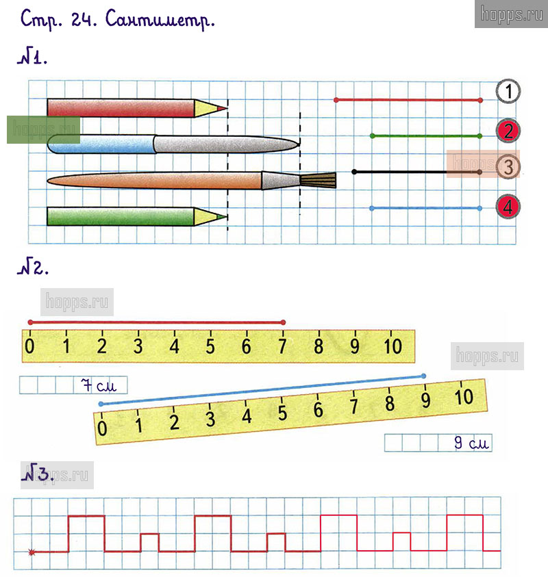 Подробные ответы к заданиям, расположенным на 24 странице 1 части рабочей тетради по математике авторов М.И. Моро, С.И. Волкова для учащихся 1 класса.