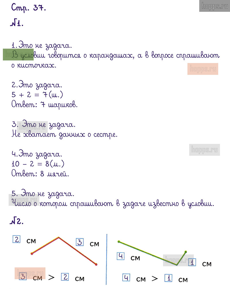 Подробные ответы к заданиям, расположенным на 37 странице 1 части рабочей тетради по математике авторов М.И. Моро, С.И. Волкова для учащихся 1 класса.