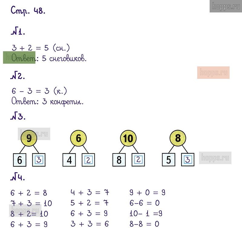 Подробные ответы к заданиям, расположенным на 48 странице 1 части рабочей тетради по математике авторов М.И. Моро, С.И. Волкова для учащихся 1 класса.