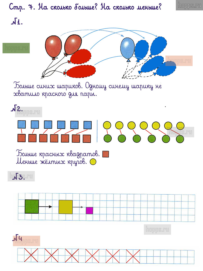Подробные ответы к заданиям, расположенным на 7 странице 1 части рабочей тетради по математике авторов М.И. Моро, С.И. Волкова для учащихся 1 класса.