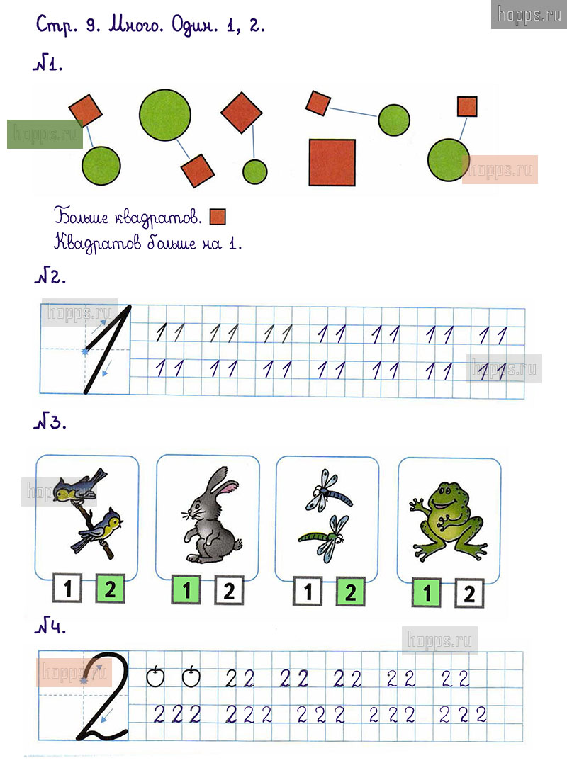 Подробные ответы к заданиям, расположенным на 9 странице 1 части рабочей тетради по математике авторов М.И. Моро, С.И. Волкова для учащихся 1 класса.