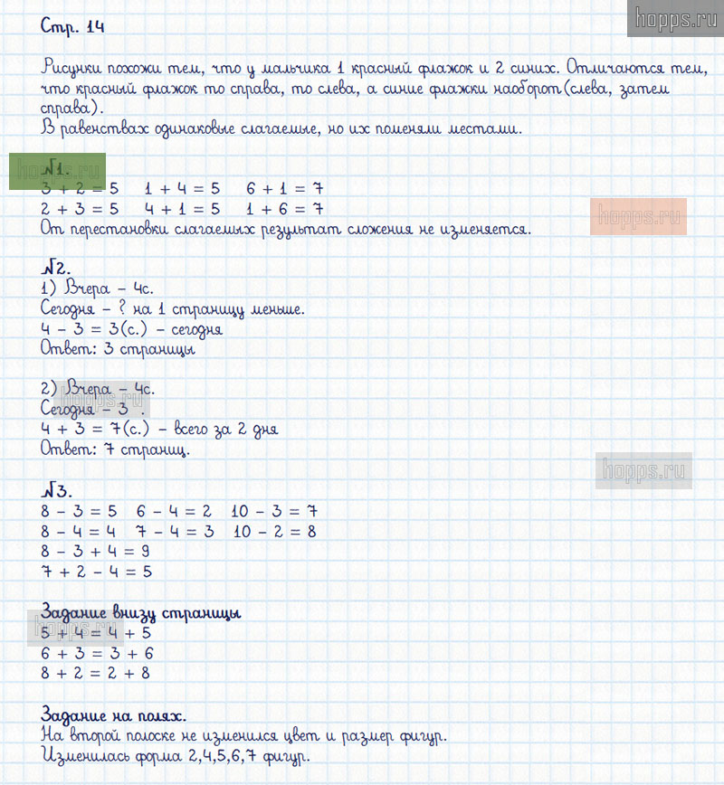 Подробные ответы к заданиям, расположенным на 14 странице 2 части рабочей тетради по математике авторов М.И. Моро, С.И. Волкова для учащихся 1 класса.