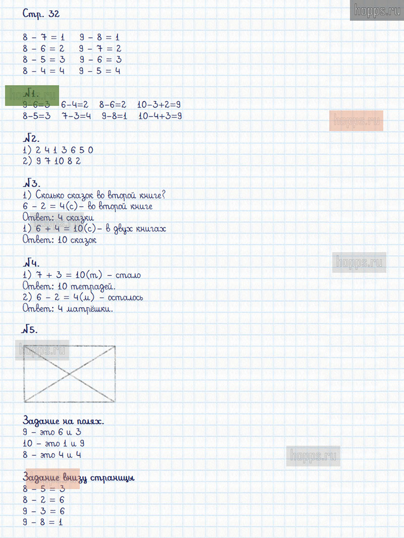 Подробные ответы к заданиям, расположенным на 32 странице 2 части рабочей тетради по математике авторов М.И. Моро, С.И. Волкова для учащихся 1 класса.