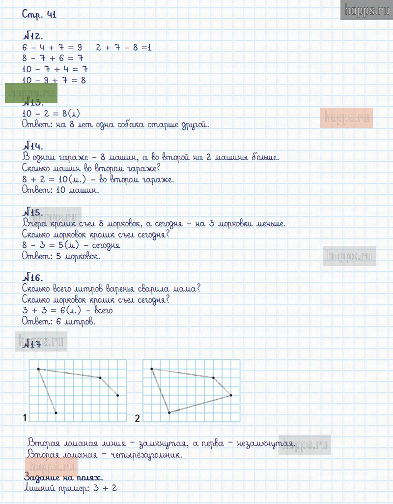 Подробные ответы к заданиям, расположенным на 41 странице 2 части рабочей тетради по математике авторов М.И. Моро, С.И. Волкова для учащихся 1 класса.