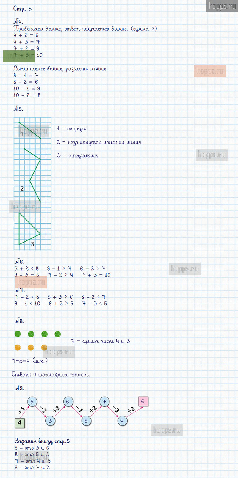 Подробные ответы к заданиям, расположенным на 5 странице 2 части рабочей тетради по математике авторов М.И. Моро, С.И. Волкова для учащихся 1 класса.