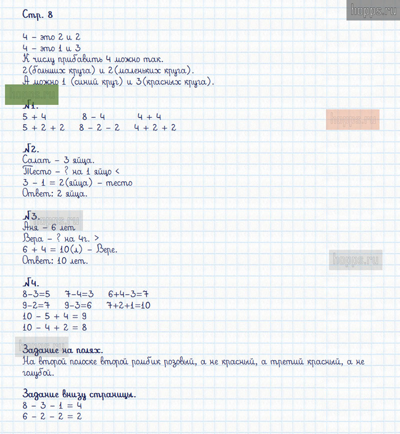Подробные ответы к заданиям, расположенным на 8 странице 2 части рабочей тетради по математике авторов М.И. Моро, С.И. Волкова для учащихся 1 класса.