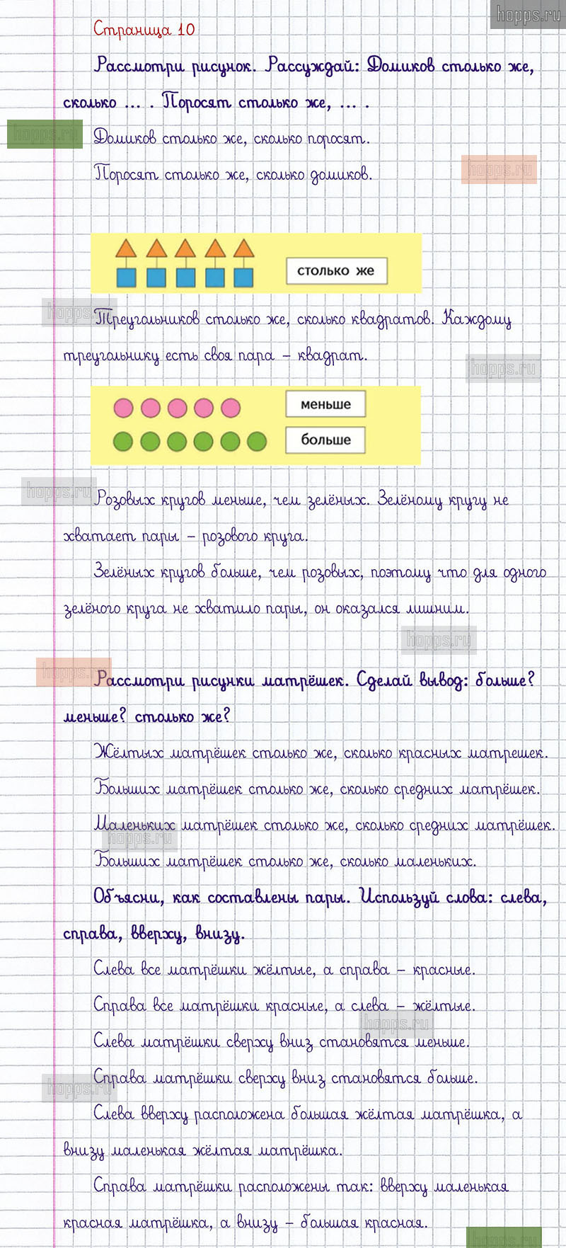 Подробные ответы к заданиям, расположенным на 10 странице 1 части учебника по математике авторов М.И. Моро, С.И. Волкова, С.В. Степанова для учащихся 1 класса.