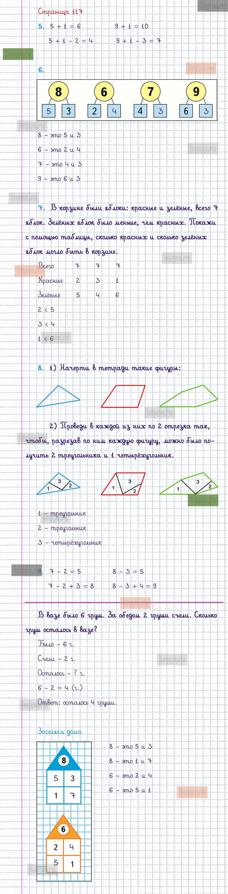 Подробные ответы к заданиям, расположенным на 117 странице 1 части учебника по математике авторов М.И. Моро, С.И. Волкова, С.В. Степанова для учащихся 1 класса.