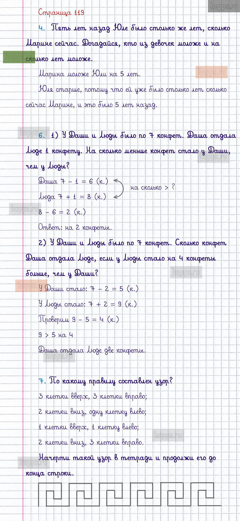 Подробные ответы к заданиям, расположенным на 119 странице 1 части учебника по математике авторов М.И. Моро, С.И. Волкова, С.В. Степанова для учащихся 1 класса.