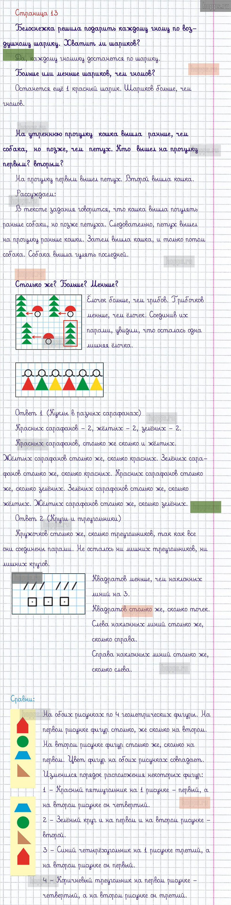 Подробные ответы к заданиям, расположенным на 13 странице 1 части учебника по математике авторов М.И. Моро, С.И. Волкова, С.В. Степанова для учащихся 1 класса.