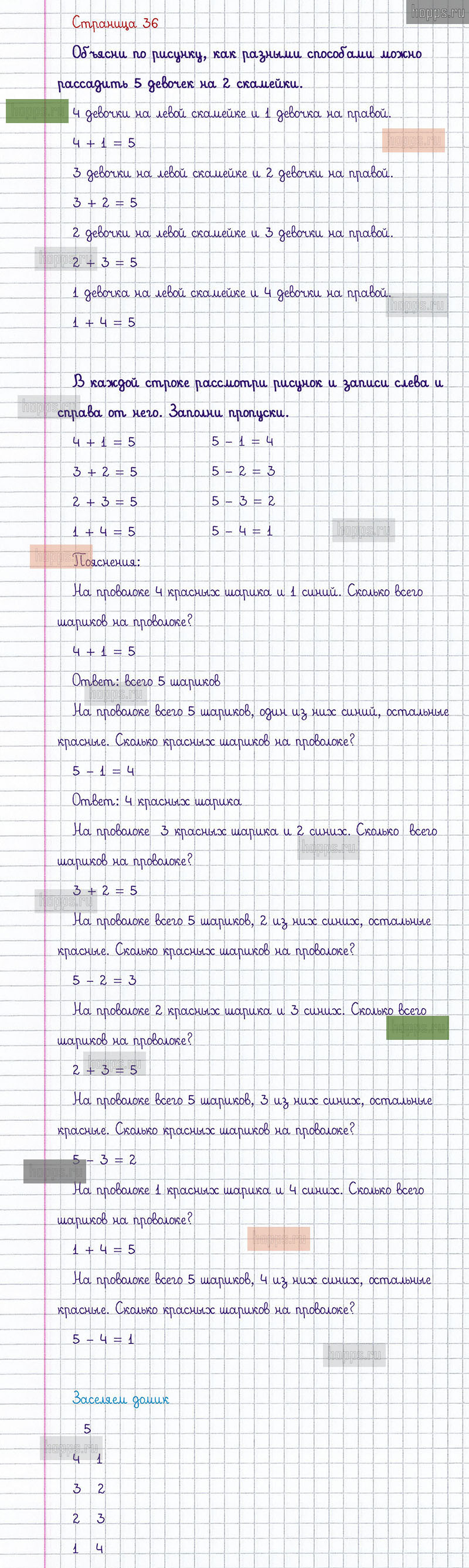 Подробные ответы к заданиям, расположенным на 36 странице 1 части учебника по математике авторов М.И. Моро, С.И. Волкова, С.В. Степанова для учащихся 1 класса.