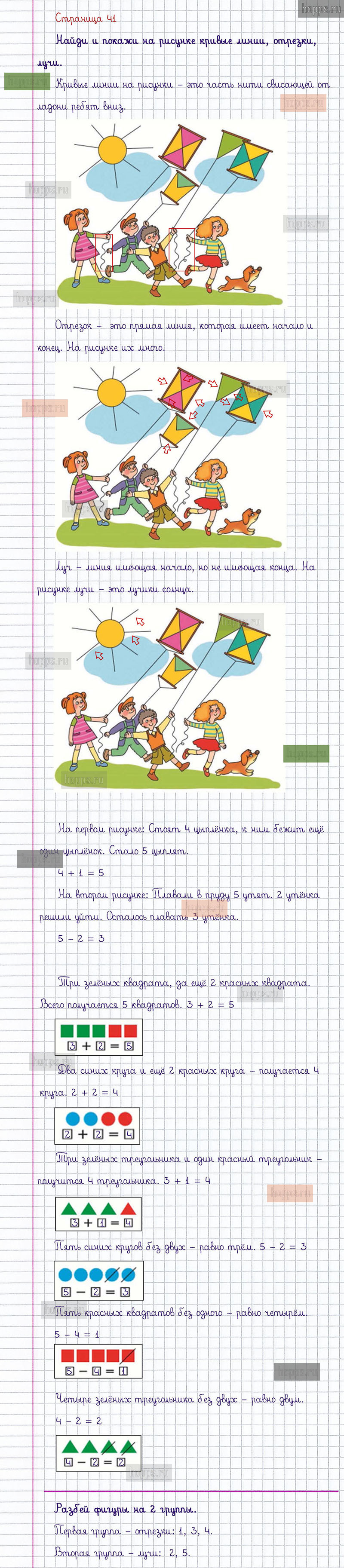 Подробные ответы к заданиям, расположенным на 41 странице 1 части учебника по математике авторов М.И. Моро, С.И. Волкова, С.В. Степанова для учащихся 1 класса.
