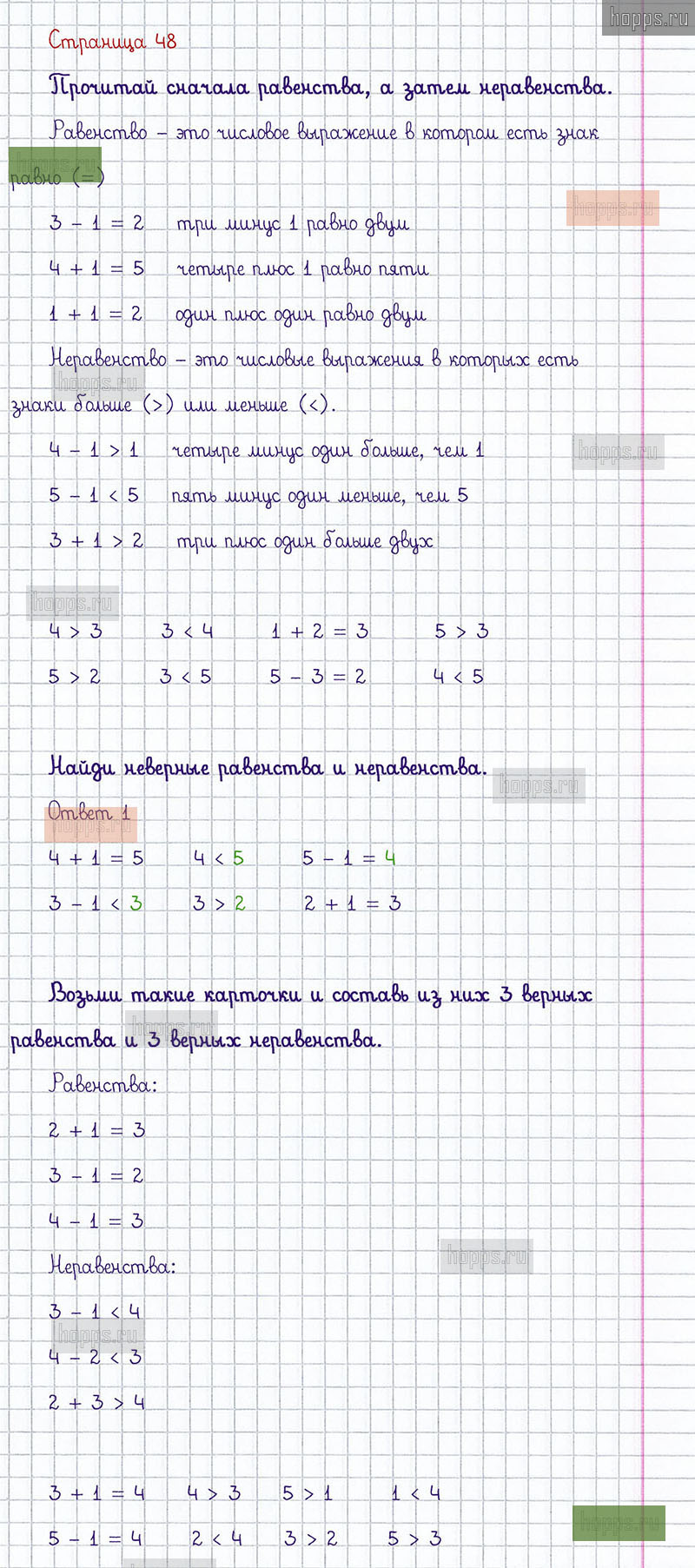 Подробные ответы к заданиям, расположенным на 48 странице 1 части учебника по математике авторов М.И. Моро, С.И. Волкова, С.В. Степанова для учащихся 1 класса.