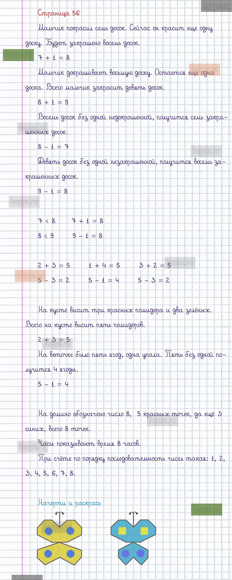 Подробные ответы к заданиям, расположенным на 56 странице 1 части учебника по математике авторов М.И. Моро, С.И. Волкова, С.В. Степанова для учащихся 1 класса.