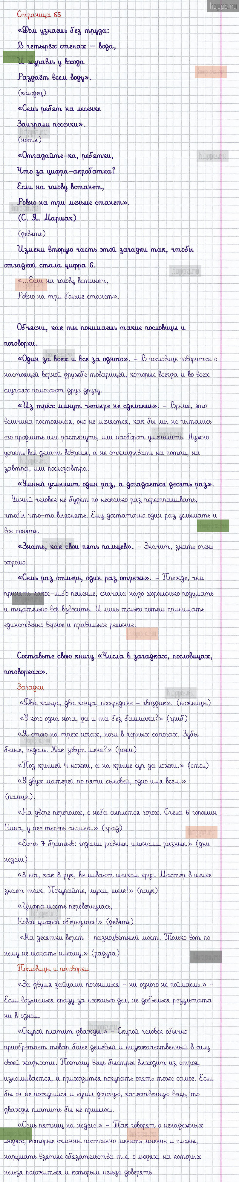 Подробные ответы к заданиям, расположенным на 65 странице 1 части учебника по математике авторов М.И. Моро, С.И. Волкова, С.В. Степанова для учащихся 1 класса.