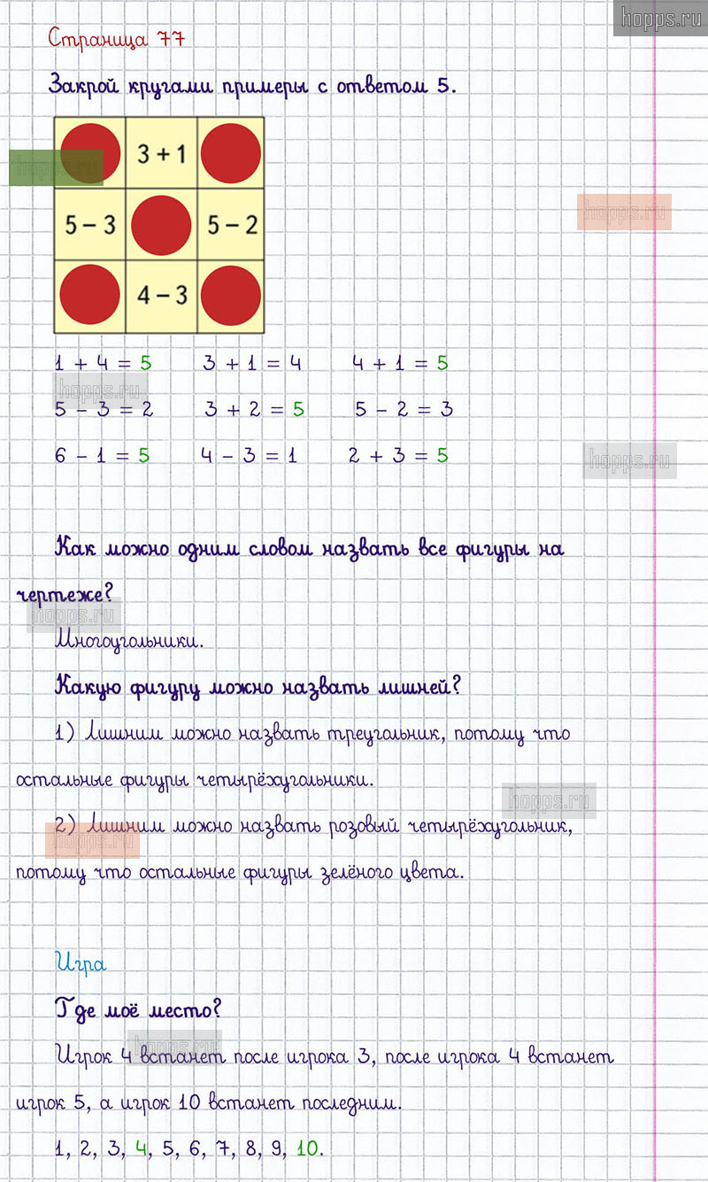 Подробные ответы к заданиям, расположенным на 77 странице 1 части учебника по математике авторов М.И. Моро, С.И. Волкова, С.В. Степанова для учащихся 1 класса.