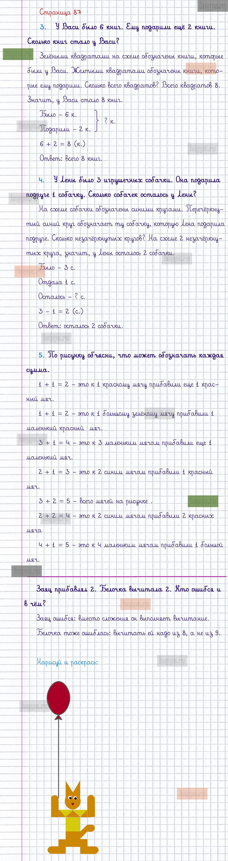 Подробные ответы к заданиям, расположенным на 87 странице 1 части учебника по математике авторов М.И. Моро, С.И. Волкова, С.В. Степанова для учащихся 1 класса.