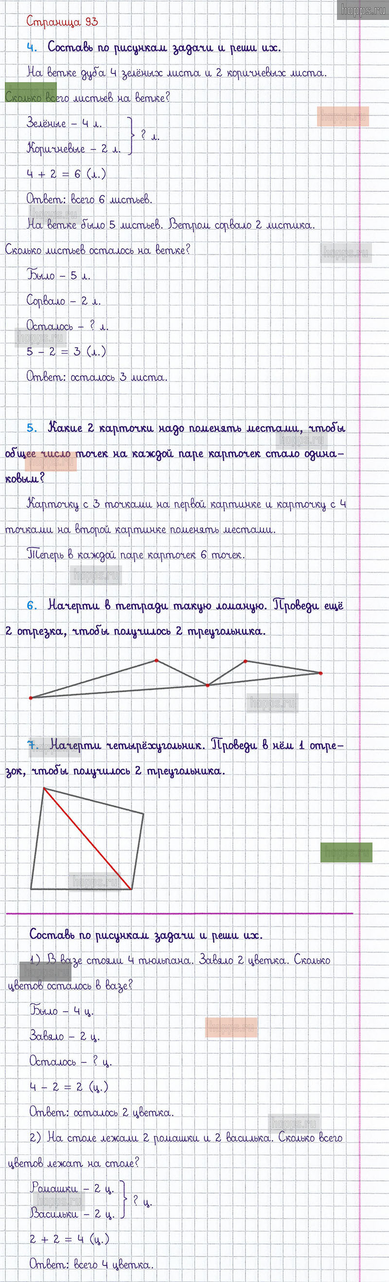Подробные ответы к заданиям, расположенным на 93 странице 1 части учебника по математике авторов М.И. Моро, С.И. Волкова, С.В. Степанова для учащихся 1 класса.