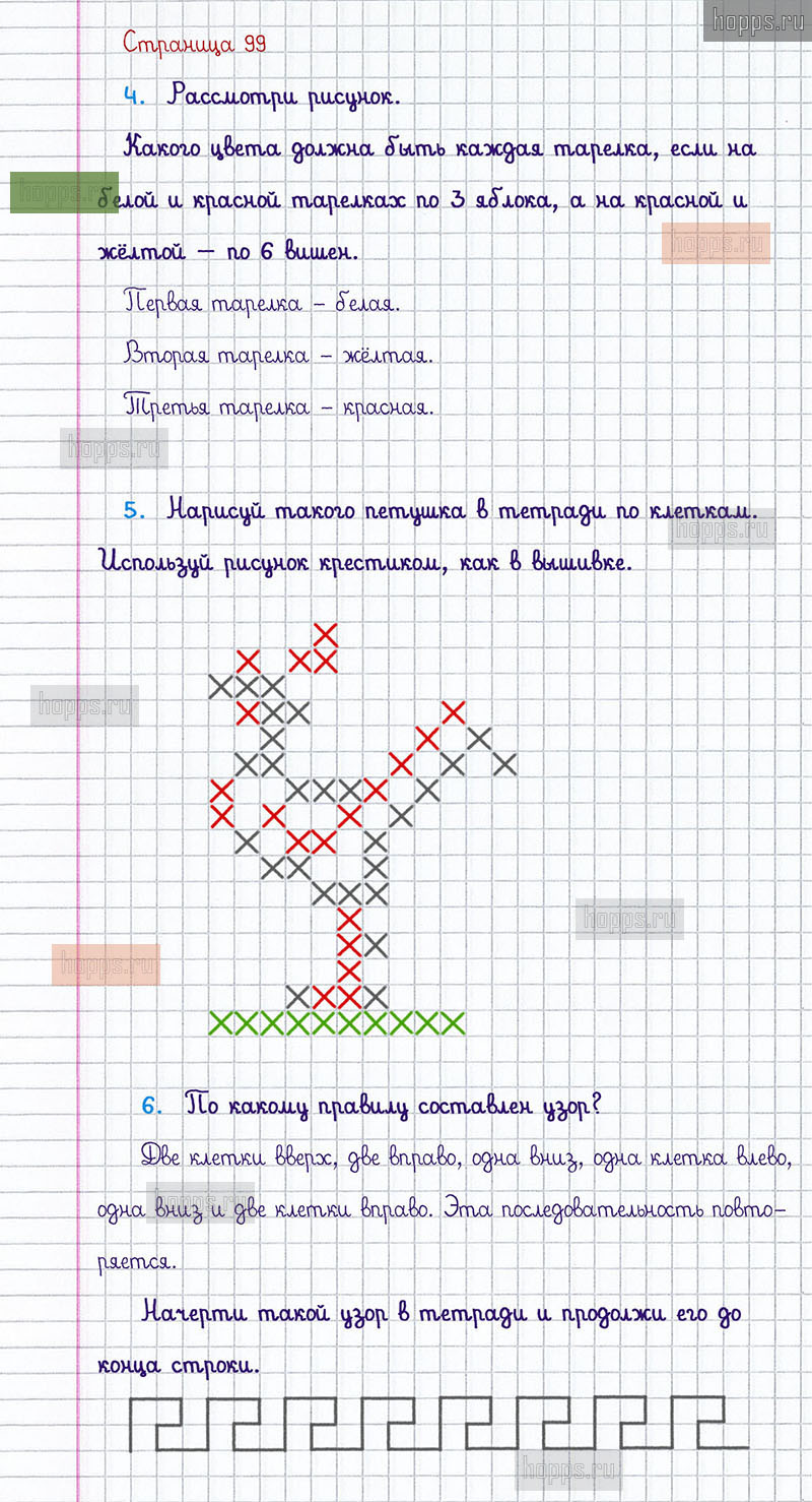 Подробные ответы к заданиям, расположенным на 99 странице 1 части учебника по математике авторов М.И. Моро, С.И. Волкова, С.В. Степанова для учащихся 1 класса.