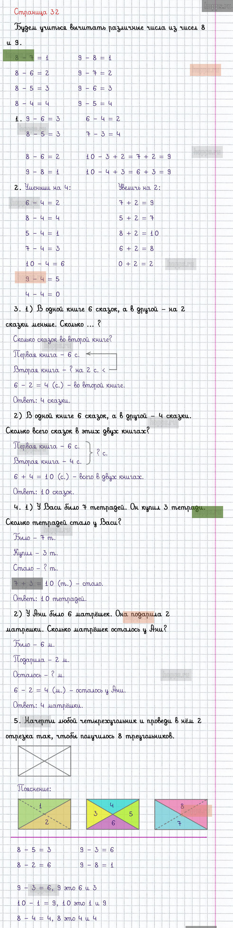 Подробные ответы к заданиям, расположенным на 32 странице 2 части учебника по математике авторов М.И. Моро, С.И. Волкова, С.В. Степанова для учащихся 1 класса.
