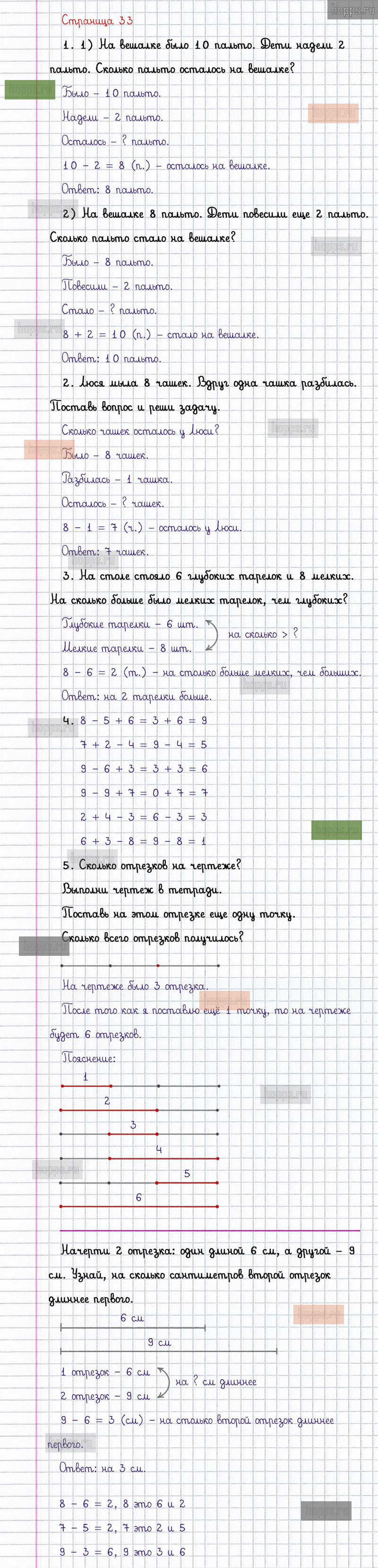 Подробные ответы к заданиям, расположенным на 33 странице 2 части учебника по математике авторов М.И. Моро, С.И. Волкова, С.В. Степанова для учащихся 1 класса.