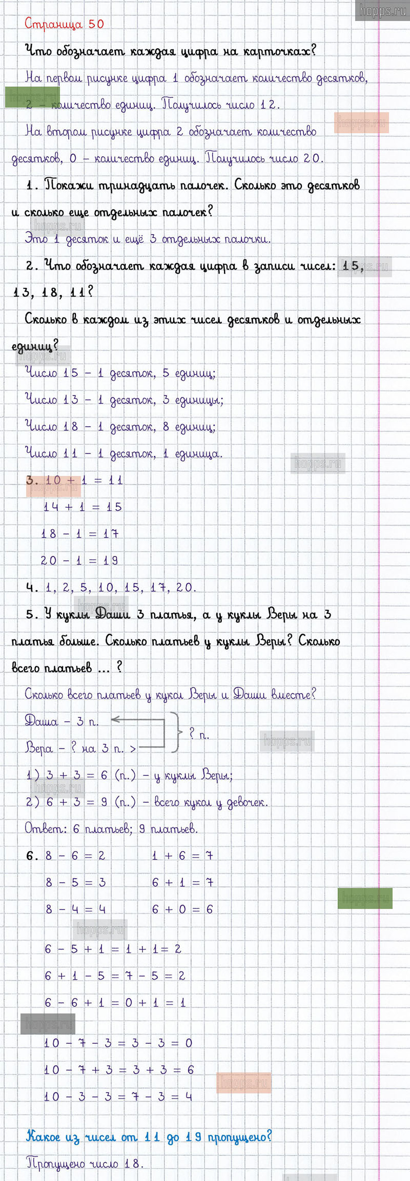 Подробные ответы к заданиям, расположенным на 50 странице 2 части учебника по математике авторов М.И. Моро, С.И. Волкова, С.В. Степанова для учащихся 1 класса.