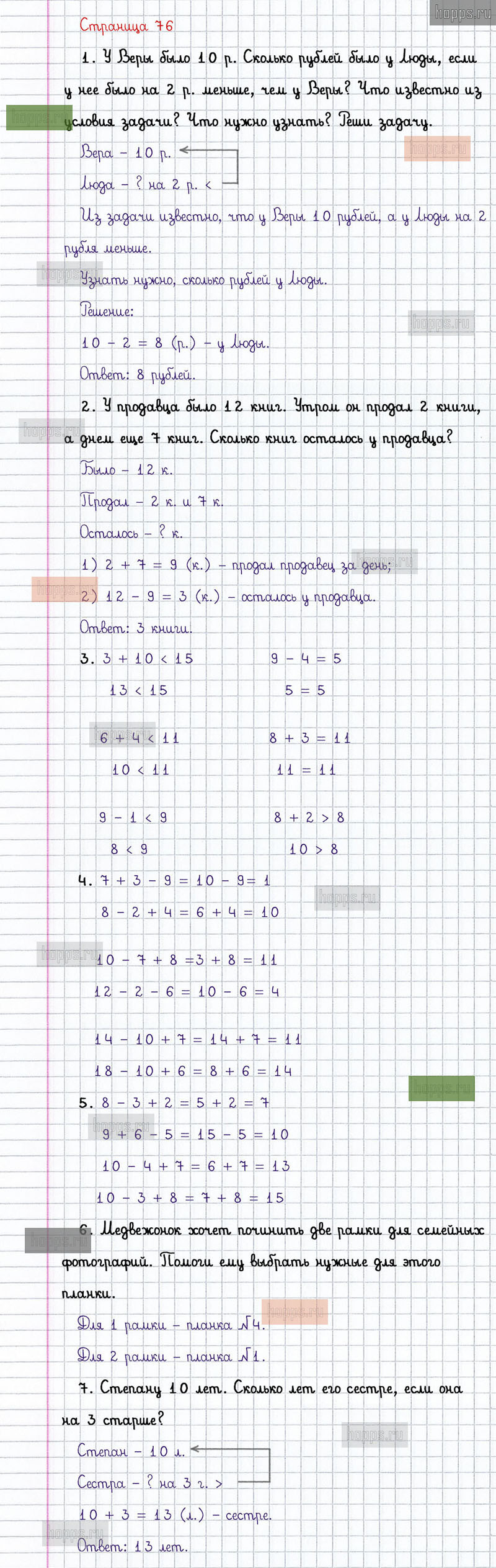 Подробные ответы к заданиям, расположенным на 76 странице 2 части учебника по математике авторов М.И. Моро, С.И. Волкова, С.В. Степанова для учащихся 1 класса.