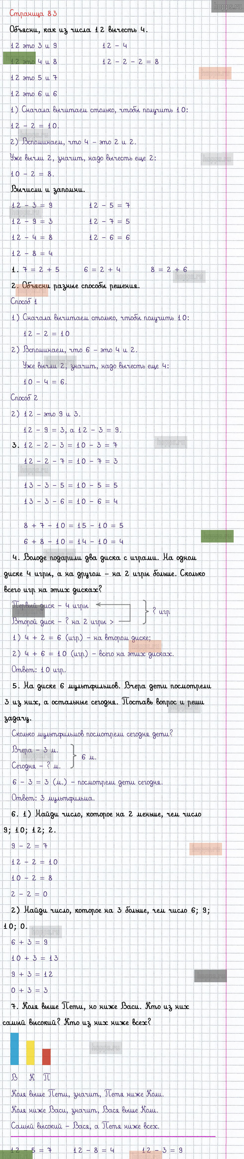 Подробные ответы к заданиям, расположенным на 83 странице 2 части учебника по математике авторов М.И. Моро, С.И. Волкова, С.В. Степанова для учащихся 1 класса.