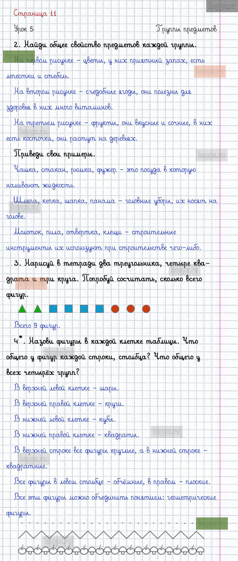 Подробные ответы к заданиям на 11 странице 1 части учебника по математике автора Л.Г. Петерсон для учащихся 1 класса. Урок 5. Группы предметов.