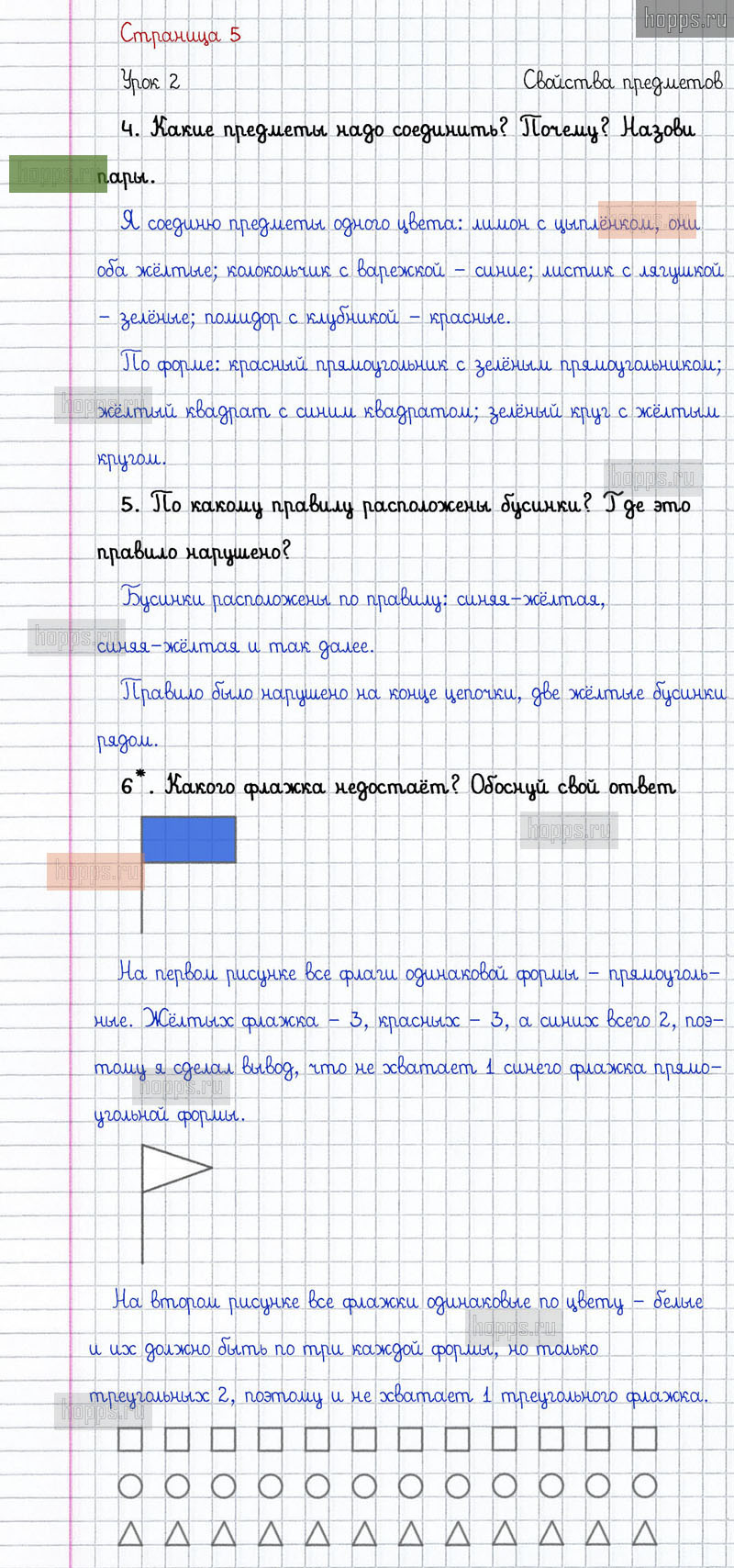 Подробные ответы к заданиям на 5 странице 1 части учебника по математике автора Л.Г. Петерсон для учащихся 1 класса. Урок 2. Свойства предметов.