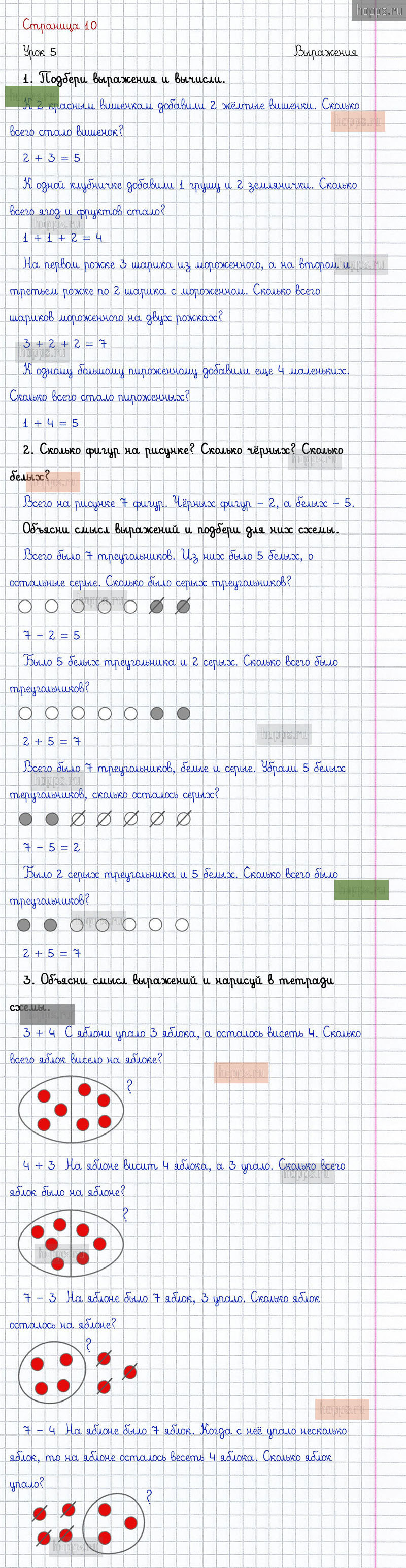Подробные ответы к заданиям на 10 странице 2 части учебника по математике автора Л.Г. Петерсон для учащихся 1 класса. Урок 5. Выражения.