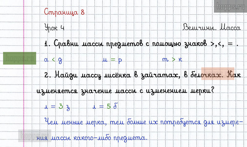 Подробные ответы к заданиям на 8 странице 3 части учебника по математике автора Л.Г. Петерсон для учащихся 1 класса. Урок 4. Величины. Масса.