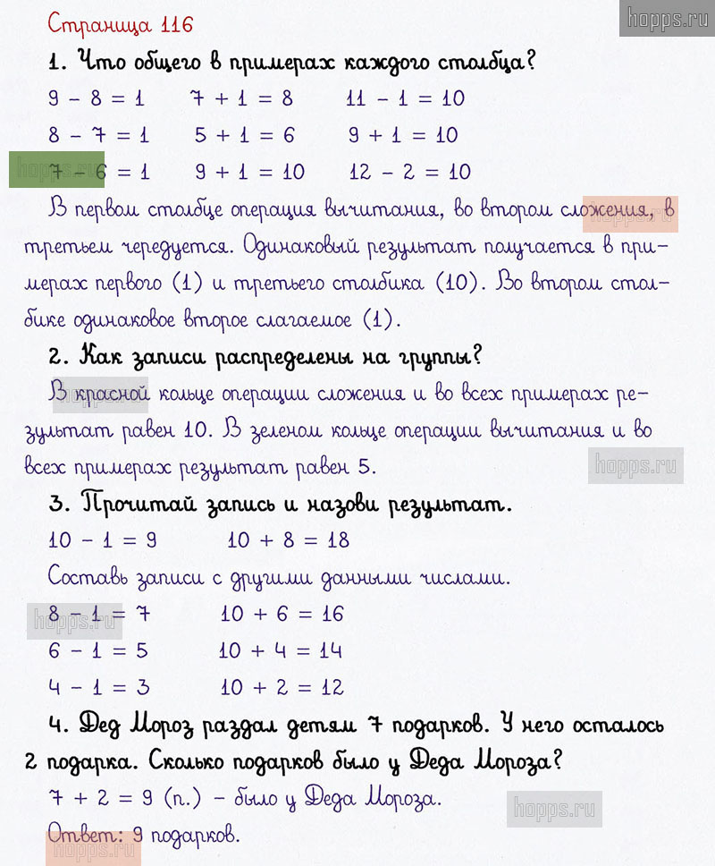 Подробные ответы к заданиям на 116 странице 1 части учебника по математике авторов В. Н. Рудницкая, Е. Э. Кочурова, О. А. Рыдзе для учащихся 1 класса. Урок 52. Складываем и вычитаем числа.
