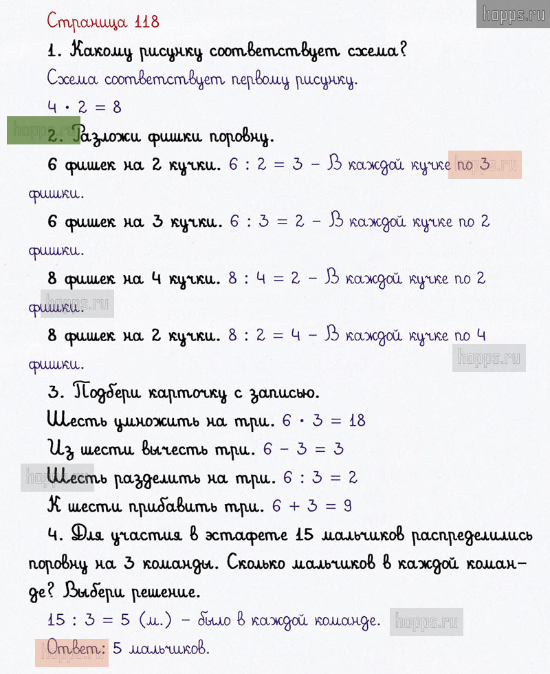 Подробные ответы к заданиям на 118 странице 1 части учебника по математике авторов В. Н. Рудницкая, Е. Э. Кочурова, О. А. Рыдзе для учащихся 1 класса. Урок 53. Умножаем и делим числа.